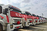 2018年3月30日,晴空萬里,藍天白云,二十余輛嶄新的紅巖杰卡C500粉罐車身披大紅花,整裝待發,即將交付...