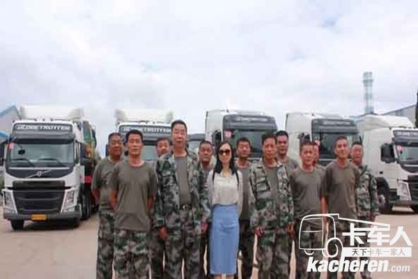 王總與車隊工作人員、沃爾沃卡車西區總經理李斐女士(中)合影