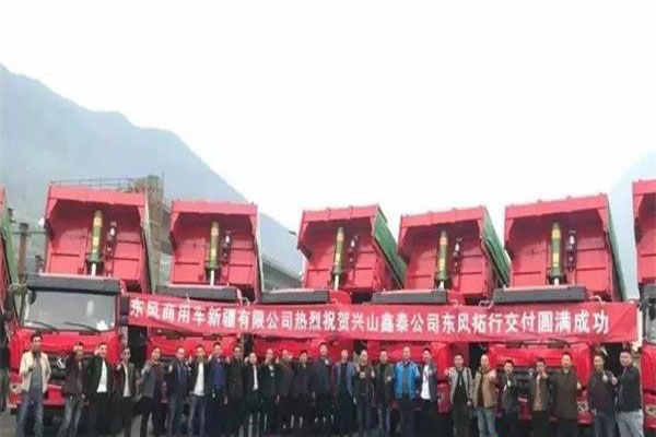 20臺(tái)東風(fēng)拓行輕量化自卸車交付現(xiàn)場(chǎng)