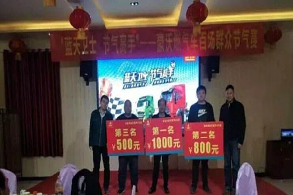 在每一場比賽的頒獎儀式上,中國重汽對獲獎選手進行獎勵,第一名1000元,第二名800元,第三名500元,并送每一位參賽用戶一塊車用篷布及禮品。