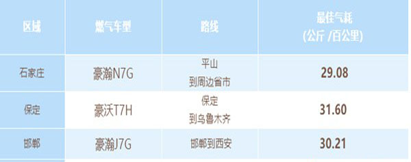 為使越來越多的用戶知曉重汽天然氣車輛的優勢,石家莊分公司相繼在石家莊、邯鄲、邢臺、保定、滄州等地舉辦了12場燃氣車群眾節氣大賽,近70名終端卡車司機參與其中,比賽結果如下: