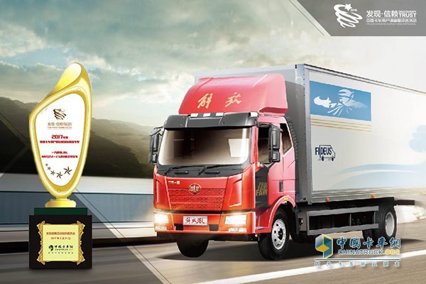 解放J6L獲評(píng)“2017年度中國(guó)卡車(chē)用戶(hù)最信賴(lài)城際物流車(chē)型”大獎(jiǎng)