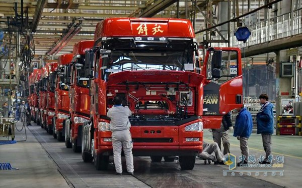 在生產方面,解放卡車廠產能全部放開,員工是鼓足干勁,緊密配合加班加點的生產,同時質量體系也不能疏忽,堅持“質量致勝”的戰略,實施全產品到市場的全過程質量控制管理,充分滿足并超越客戶期待,幫助用戶早賺錢,賺多錢。
