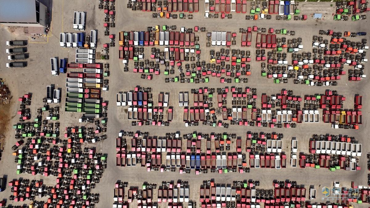 數百輛重卡放在一起場面十分壯觀