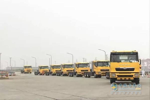 2017年6月26日,上海港港口,一輛輛漢馬天然氣系列重卡穿過還沒完全消散的海霧,整齊劃一、緩緩駛向停泊在岸邊的貨輪。據了解,這批訂單共計51臺,包含45臺漢馬H9牽引車、6臺攪拌車。它們將隨著這艘貨輪遠赴重洋,交付到大洋彼岸的秘魯經銷商手中。