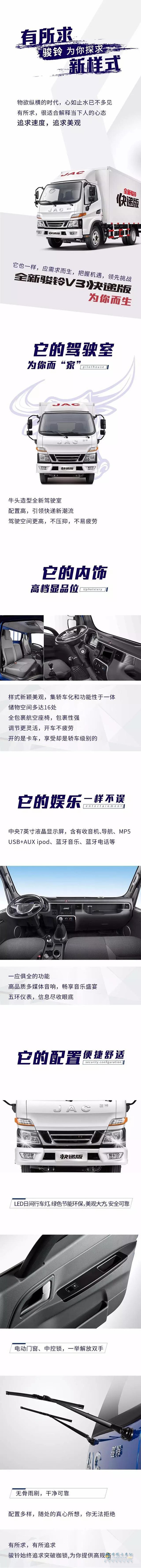 隨著物流行業的快速發展,各家車企瞄準了快遞運輸這個大熱門,紛紛推出了定制車型。江淮汽車拿出自家旗下主打駿鈴做模板,推出了駿鈴V3快遞版。大來頭的駿鈴V3,中國卡車網和你一起揭開它的神秘面紗。