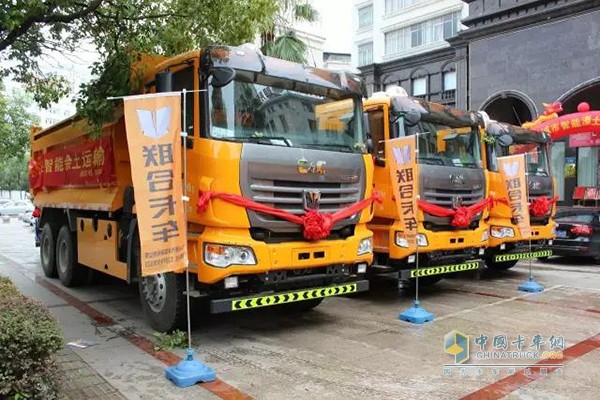 等待交付的聯(lián)合卡車新型智能渣土車