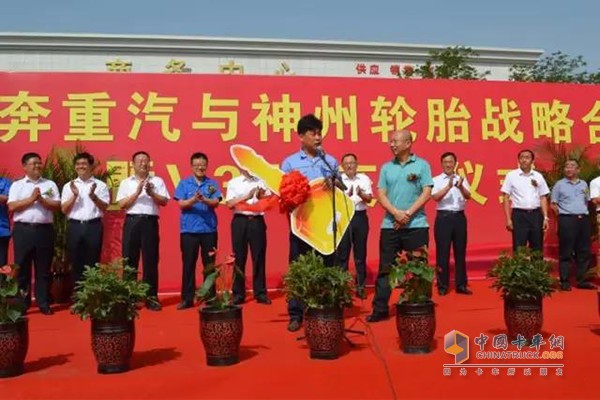 石嘴山市副市長朱劍致辭,朱市長對北奔重汽與神州輪胎戰略合作給予了高度的評價和重視,對北奔重汽給予肯定,對雙方今后的合作十分看好。