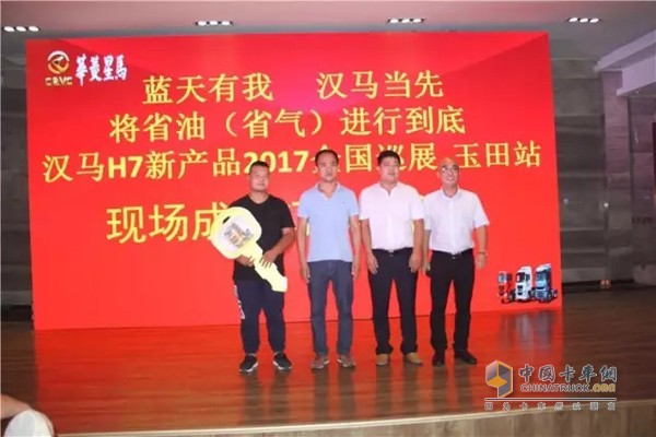 2017年9月4日,漢馬H7新品全國巡展來到了唐山玉田縣。當天200余名玉田周邊地區物流公司及新老用戶代表、華菱星馬相關負責人、經銷商——意德星汽車銷售公司相關人員歡聚一堂,共同見證漢馬H7新品的卓越品質!