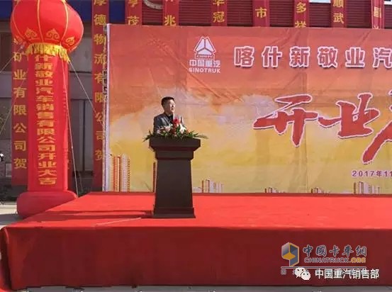 在開業慶典上,喀什新敬業汽車銷售有限公司董事長郭虹發表了熱情洋溢的致詞,他向參加開業慶典的各位貴賓和工作人員表達了誠摯的謝意,并表示,將始終秉承勤懇誠信、惠人達己的企業文化,創新管理模式,不斷將公司做大做強,為廣大新老用戶竭誠服務,為中國重汽品牌在南疆創造新的發展業績。