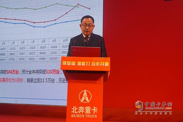 “強基礎、提能力、合作共贏”是北奔重汽集團2018年商務年會的主題,也是北奔重型汽車集團有限公司董事長、黨委書記王世宏在臺上所講的第一句話,北奔重汽希望通過與合作伙伴提早布局上下游產業鏈發展的新戰略、新舉措、新發展,提前預估重型車市場,從而有針對性的對產品結構進行升級,以符合市場需求,而這一切既離不開北奔重汽的奮進,也離不開經銷商、服務商等下游企業的努力。