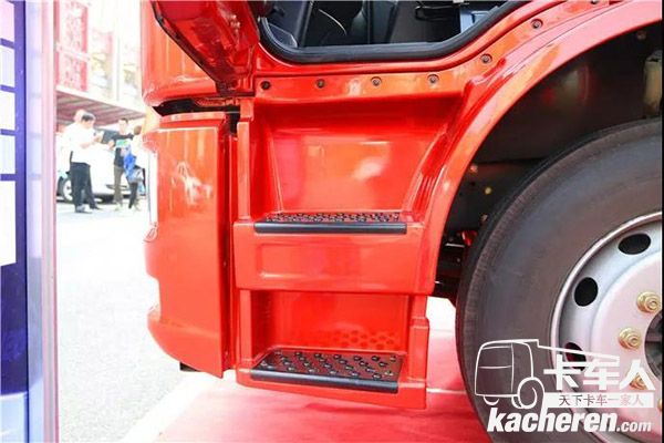 蹬車(chē)臺(tái)階由老款車(chē)型的一級(jí)整體式踏板和一級(jí)鐵質(zhì)踏板結(jié)合的形式變成了兩級(jí)防滑蹬車(chē)踏板,上下車(chē)變得更加方便、安全,對(duì)整體美觀度的提升也有一定的幫助。