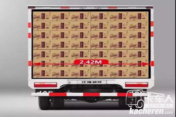 帥鈴全能物流版具有2.42內(nèi)寬貨廂和22.1立方超大空間,