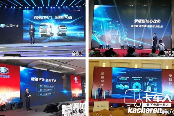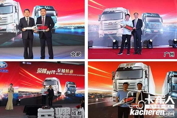 2018年6月6日,“榮耀時代 至臻傳承”——解放新J6榮耀版上市暨2018款牽引系列產品全國總投放儀式,在安徽合肥隆重舉行,同時廣州、成都、石家莊同步舉行了分投放儀式,與用戶朋友們攜手創造一個榮耀時代。