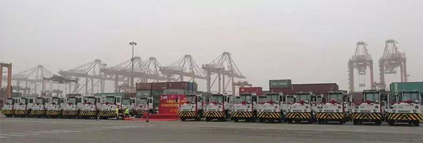 2019年1月11號,“中國重汽&廈門港務運輸31臺國五排放HOVA碼頭牽引車交車儀式”在廈門新海達碼頭隆重舉行,31臺碼頭牽引車身披紅花、整齊劃一、順利交付。