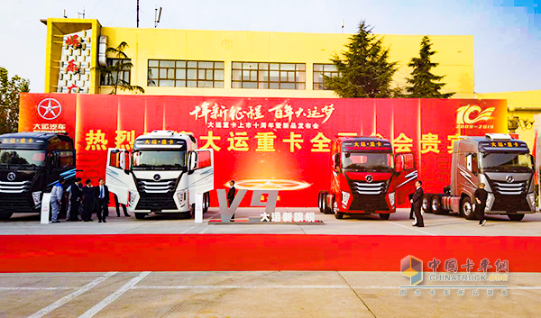 2019年11月12日,以“十年新征程,百年大運夢”為主題的大運重卡上市十周年暨新品發(fā)布會,在山西運城圓滿舉行。會上,大運集團董事長遠勤山先生表示,回首過往,大運汽車已經(jīng)完成了從“無”到“有”的跨越;展望未來,大運汽車將繼續(xù)為夢前行!