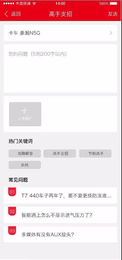 高手支招答困惑。最近我們上線了高手支招功能,作為重汽最至親的用戶,您的困惑本就應(yīng)當由高手來解決。現(xiàn)在您的提問可以細化到您對應(yīng)的車輛型號,從而得到得到更精準的解答。高手支招更有熱門關(guān)鍵詞與常見問題功能,大家關(guān)心的問題搜一搜什么都能解決。
