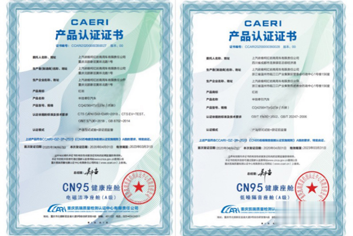 紅巖杰獅系列車型喜獲國家權威機構頒發的“CN95健康座艙”認證證書