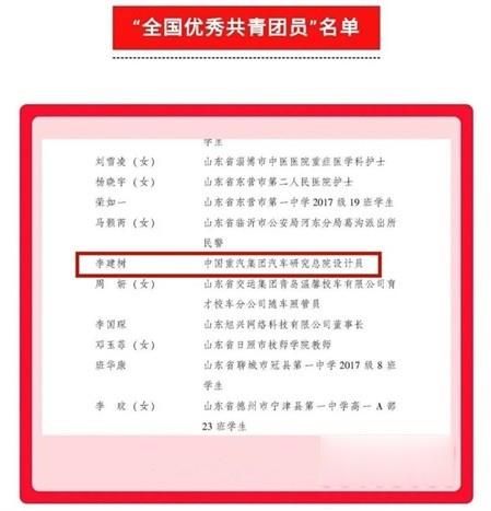 共青團中央頒授五四表彰文件,表彰青年中的優秀典型和模范代表。其中中國重汽集團榮獲“全國紅旗五四團支部(團總支)”和“全國優秀共青團員”兩項大獎。