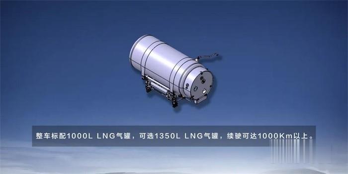 整車標配1000L LNG氣罐,可選1350L LNG氣罐,續駛可達1000Km以上。