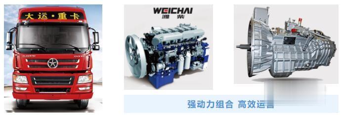 搭載法士特變速箱,針對大運重卡專門研發的大中心距系列變速器,傳動效率高達99%。多檔位大中心距雙中間軸鋁合金變速箱,自重輕,散熱好,換擋迅捷,傳動更平穩。