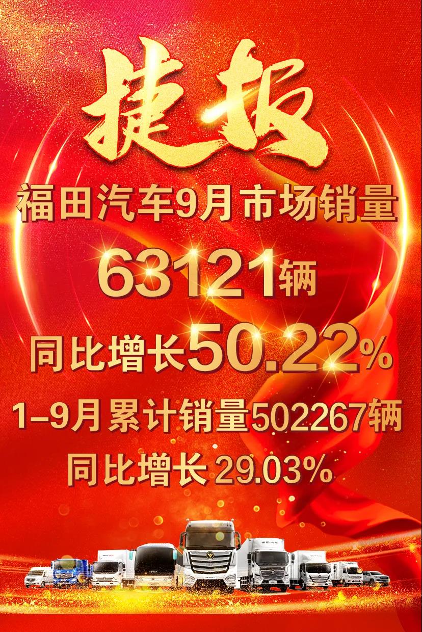 捷報(bào)頻傳 福田汽車9月銷量63121輛,同比增50.22%!