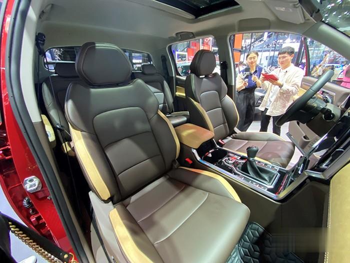 張先生一看就是個講究人,看完中控又開始研究座椅。江淮全新寬體大皮卡在內飾的選料方面也是極其考究,車內大部分都是軟質材料,在門板、地臺部分還有鋼琴烤漆和木紋材質點綴,進一步提升了新車的檔次感。張先生表示本次車展也去了其他皮卡展臺,對于其他品牌內飾的印象就是太過粗糙,體驗感較差,而在江淮皮卡里面,還真是有里有面的,禁得住“推敲”。