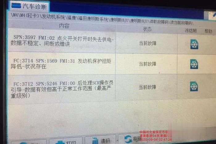 救援師傅經(jīng)過排查發(fā)現(xiàn)車輛發(fā)動機尾氣超標(biāo),限扭造成車輛只能行使20公里/小時,隨后立刻用診斷儀強制消除故障碼3次,電瓶斷電處理,經(jīng)過20分鐘緊張維修,車輛可以暫時正常行使。