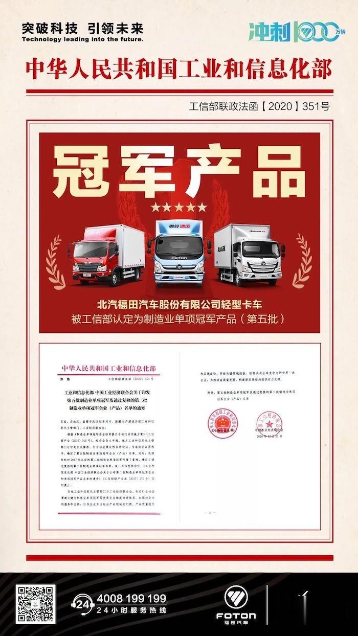 工信部權(quán)威發(fā)布,奧鈴輕卡“冠軍產(chǎn)品”實(shí)至名歸!