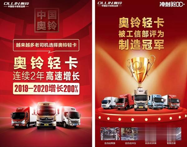 近日,工業和信息化部、中國工業經濟聯合會發布“第五批全國制造業單項冠軍示范企業(產品)”,福田汽車輕型卡車入圍國家級制造業單項冠軍產品,身為福田汽車輕卡主體業務的中國奧鈴,依靠強大的市場影響力和敢為人先的創新力,成為當之無愧的“輕卡冠軍”。多年來奧鈴始終生產合規車型,尤其在近兩年法規嚴格的時機,奧鈴銷量一路領先,連續兩年高速增長,2019-2020增長200%。首都北京,10個輕卡司機5個選奧鈴。中國奧鈴通過不懈努力贏得了國家與市場的雙重認可。