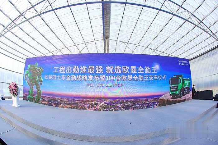 歐曼渣土車全勤戰略發布暨100臺歐曼全勤王渣土車交付