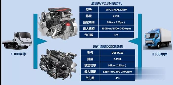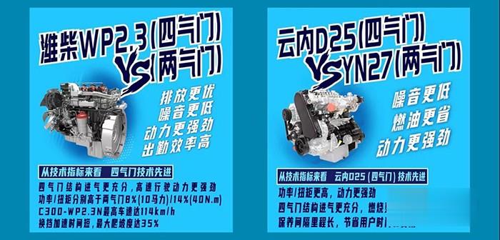 C300、H300中體產品搭載的濰柴和云內德威采用四缸十六氣門技術,燃油燃燒更充分,同時能保持高輸出,用戶實際用車中,能體驗到動力更強勁、更省油、更好開。