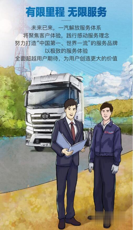 憑借過硬的技術和令用戶放心的質量,2021年一汽解放敢為人先,面向用戶發布“感動服務”領航計劃,創行業終身服務先河——重磅推出“三大終身服務”:三大總成核心零部件終身質保、終身免費維修,并且終身免費送機油濾芯。同時,解放持續開發維修件產品,進一步降低用戶的維保成本。讓選擇解放的用戶無后顧之憂,在有限的里程內享受無限的服務。未來,一汽解放服務體系將聚焦客戶體驗,踐行感動服務理念,努力打造“中國第一、世界一流”的服務品牌,以極致的服務體驗全面超越用戶期待,為用戶創造更大價值。
