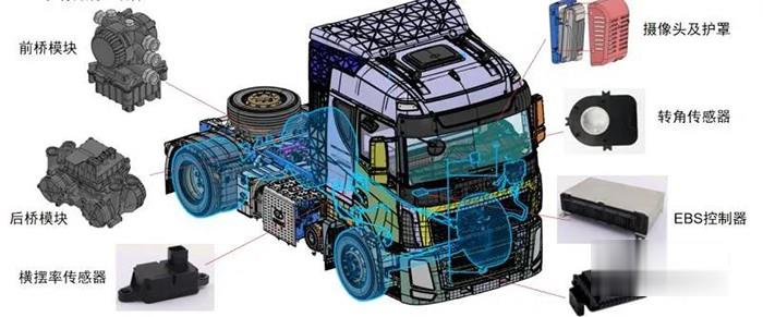 5.盲點監測(BSD):利用毫米波雷達、紅外攝像頭識別車輛盲區,通過車載大屏和聲光報警器報警,避免盲區風險;6.360環視(AVM):通過4-6路高清攝像頭,實現不同方位視頻數據采集,并通過算法實現3D全景環視,準確掌握車輛周邊動態,降低事故風險。在應用這項系統的同時,華菱汽車電氣部ADAS項目團隊還根據具體實際情況進行了技術創新。據陳傳群介紹,針對前向防碰撞功能(AEBS),在采用單目攝像頭和77GHz毫米波雷達融合的方案基礎上,同時采用多路CAN總線通訊技術,實現車況信息的收集與快速處理、行駛數據在漢馬科技車輛網平臺記錄存儲、分析,做到持續升級更新,尤其和國六發動機ECU、行駛記錄儀、電子制動器EBS控制器、儀表IC等車輛信息控制單元和信息采集器之間快速通訊并響應,減少線束冗余。結合自動擋AMT變速箱,電控液壓轉向器,能實現ACC自適應巡航、LKA車道保持等L2級別自動駕駛。在攪拌車輔助駕駛上,漢馬科技勇于創新,開發了遠程智能化外加劑系統,該系統可通過平臺下發指令,遠程控制車輛完成外加劑的定時、定量添加和管路的清洗工作。實現外加劑精準定量添加,在保證車載混凝土產品質量的同時,避免駕駛員行車分神操控設備,造成安全隱患。并且該系統還配置站內抑塵系統,可對攪拌站內車輛密集流動產生的揚塵、煙塵顆粒,進行有效的環保抑塵,提高惡劣道路環境的視野效果,通過這些創新技術,不斷提升用戶體驗。