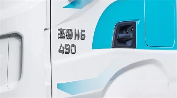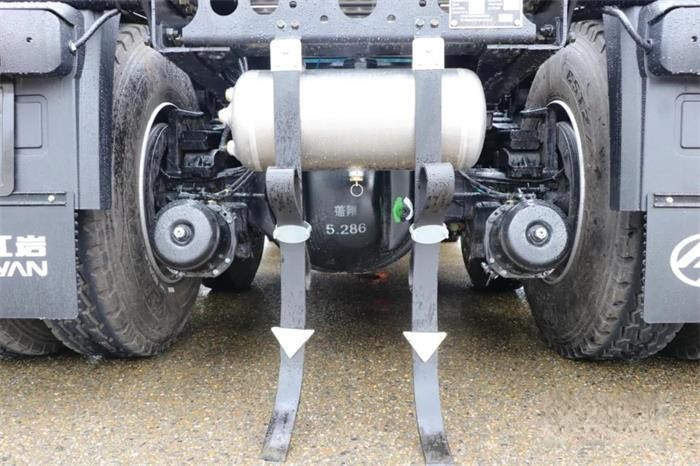 上汽紅巖杰獅H6純電動重卡在車架側(cè)面安置了高功率電動打氣泵