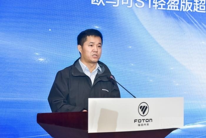 歐航歐馬可事業部營銷公司輕卡副總經理朱和義講解新藍牌城市物流一體化解決方案
