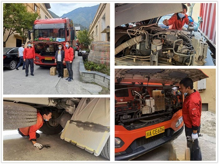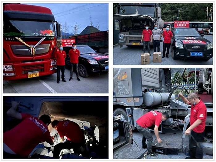 根據應急方案,由甘孜州新興汽車技術服務有限公司、雅安亨通技術服務站、西部石棉強聯工貿有限公司3家服務骨干單位前往災區,為所有參加救援、運送物資、搶險的東風車輛提供檢修、免費換機油、送尿素、送飲用水和方便面等服務。