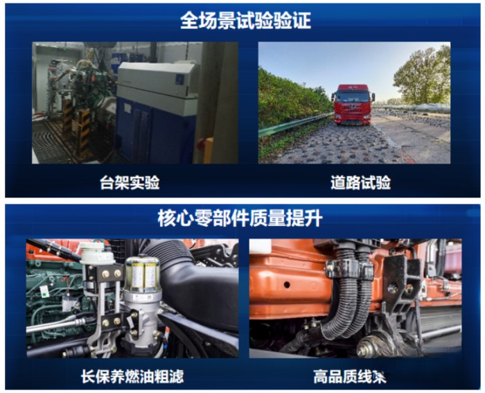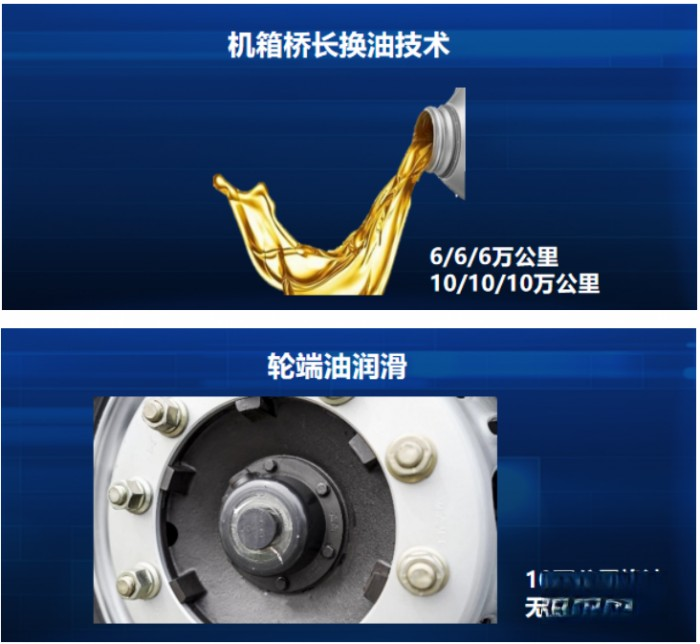 在提高運營效率方面,一汽解放首推定制化換油方案,針對資源市場,開發(fā)了專用的長效潤滑油,實現(xiàn)機箱橋6萬公里換油;針對物流市場,用戶可通過在服務(wù)站更換濾芯及油品,實現(xiàn)機箱橋10萬公里換油,滿足不同類型用戶的使用需求。輪端采用油潤滑技術(shù),10萬公里保養(yǎng),無需“扒輪”及涂抹黃油,大大減少保養(yǎng)時間及成本,提升運營效率。