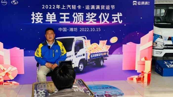 2022年9月下旬起,上汽輕卡聯合運滿滿同城快車開展的貨運節正式拉開帷幕,通過單王挑戰賽、超級津貼、滿單獎勵等豐富多樣的線上線下活動,用一站式的解決方案、高標準的服務、實實在在的補貼,高效匹配供需兩側貨運需求,助力實體經濟發展,為同城貨運司機創收。時隔近一月的火熱角逐,于10月落下帷幕,產生本次運貨節最終冠軍,10月15日,貨運節于山東濰坊開展貨運節接單王頒獎儀式。