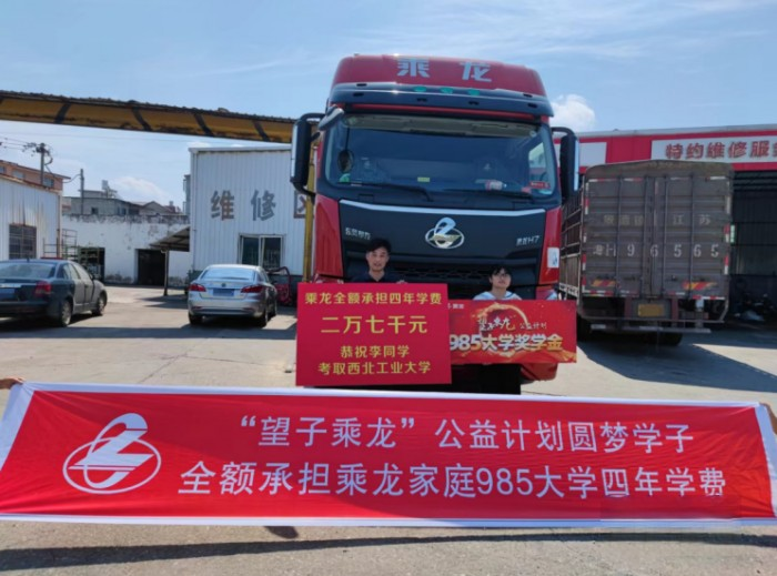孩子是一個家庭的希望,是家庭的未來,卡車司機也不例外,作為有責任、有擔當的商用車制造企業,東風柳汽乘龍一直走在守護卡車司機的最前沿。2021年,發布國內首個關愛卡車司機子女的“望子乘龍”公益計劃,以實際行動關愛卡友家庭,助力卡友子女圓大學夢。在過去的一年時間里,“望子乘龍”公益計劃共資助11位卡友子女入讀雙一流大學,承擔了他們大學四年的學費,同時為1172名考上高中或者大學的卡友子女提供了獎學金。