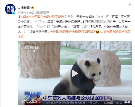 2022年卡塔爾世界杯正式開幕,而來自中國的大熊貓也在多哈與公眾正式見面,據悉“四海”“京京”狀態良好,安逸的生活甚至讓他們長胖了6斤。這對萌壞中東人民的“帥哥”“美女”出生于中國大熊貓保護研究中心臥龍神樹坪基地,跨越千山萬水去往卡塔爾全靠了“娘家人”的貼心安排,其中就有福田奧鈴這個卡車品牌的一路護航。