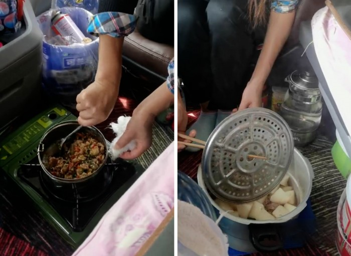 這輛車不僅是陳師傅家庭的重要收入來源,也是陳師傅夫妻移動的家,有時候出去一趟就一兩個月。一是受疫情影響住賓館不方便,二是本著開源節(jié)流的想法,他們大部分時間也生活在車上。雖然條件比不上居家,但是車里這一方天地,也是溫馨的港灣。