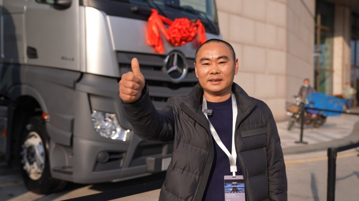“我們公司主要從事快遞等運輸,從常州、無錫運往廣州等地,我購買了530馬力的奔馳國產重卡,第一次運輸在滿載50噸、行駛山路的情況下,百公里油耗只有30升油,我們還是很滿意的,而且我們做甩掛運輸,這個車的爆發力也很好,也能滿足對時效的要求。“