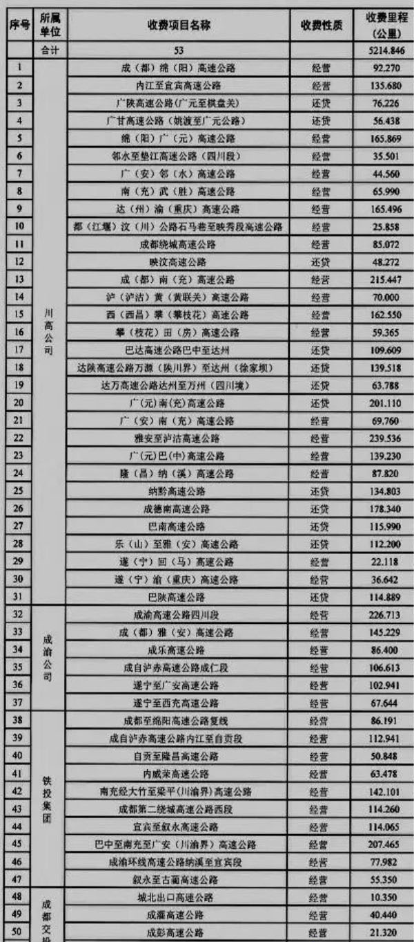 根據公告,自2019年4月1日起至2020年3月31日止,在四川省交投集團、四川省鐵投集團和成都交投集團等國有全資或控股的53個高速公路路段,對普通貨車實施“遞遠遞減”差異化收費。