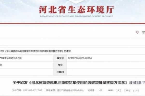 2023年8月3日卡車網記者獲悉,近日,河北省生態環境廳、河北省發展和改革委員會、河北省工業和信息化廳、河北省交通運輸廳聯合印發《河北省氫燃料電池重型貨車使用階段碳減排量核算方法學》(以下簡稱《方法學》)。