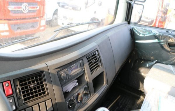 東風多利卡D9的內飾和外觀一樣,透露出一股老東風的味道。中控臺為了方便司機觀看和操作采用了弧形的設計,主駕駛座椅采用氣囊座椅,提升駕駛的舒適度,座椅右側是變速箱檔把和斷氣剎拉手,后面一大一小兩個杯座是東風中卡的特色。