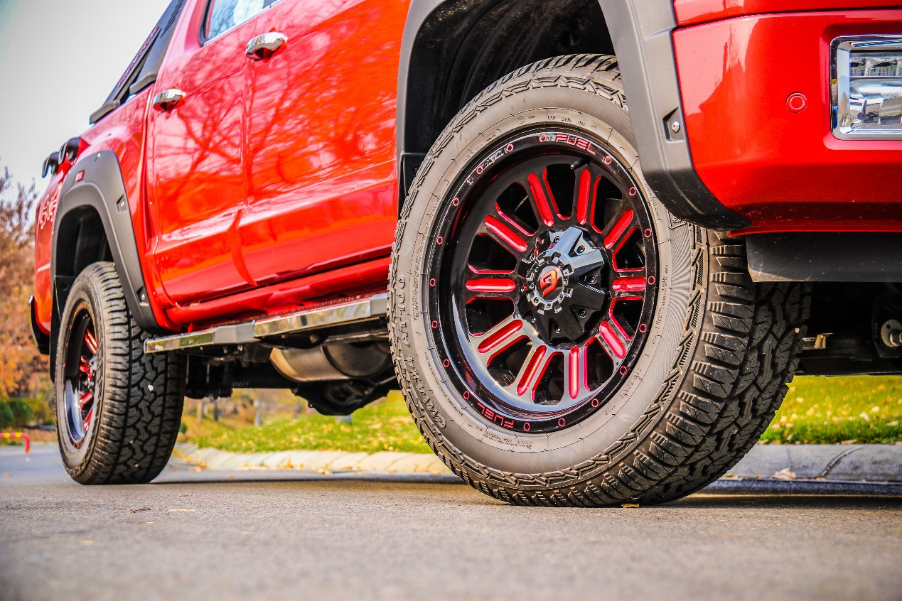 大將軍配備的熏黑輪眉,更突顯其硬派風格,同時它還配備原廠AT胎,方便走非鋪裝路面。18英寸輪圈采用多輻式設計,并采用電鍍紅的配色,與車身顏色呼應。