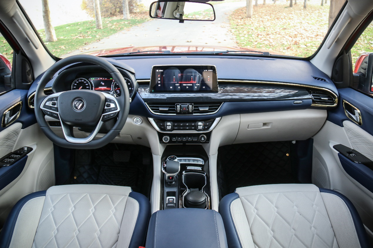 大將軍在內飾用料上也絕對下本,大量皮質包括,配合菱形縫線,手能觸碰到的大部分面積都是軟質材質,中控臺、門板等還帶有金色裝飾條,帶來較強的輕奢風格。